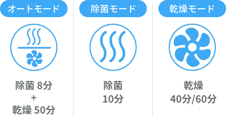 ほったらかしで除菌から乾燥まで終わるので、 手間がぐっと減りました。